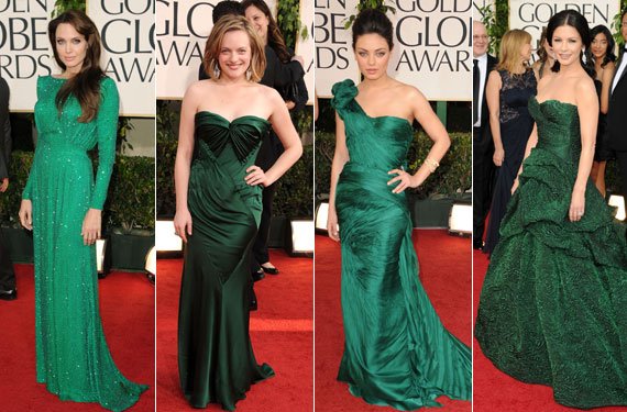 A pasztell, visszafogott árnyalatok mellett a legkedveltebb a smaragd zöld szín volt, melyet olyan sztárok választottak, mint Mila Kunis, a Fekete hattyú mellékszereplője (Vera Wang), Catherine Zeta-Jones (Monique Lhuillier) és Elisabeth Moss (Donna Karan).
