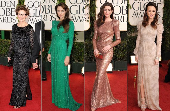 Az est egyik legnyerőbb darabja a hosszú ujjú, uszályos estélyi ruha volt. Ezt választotta többek között Anette Bening (The Kids Are All Right), Tom Fordban, Angelina Jolie (Az utazó)Versace-ban és Anne Hathaway (Szerelem és más drogok) Giorgio Armani-ban.