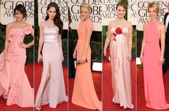 A fiatal színésznők már most a tavaszi trendnek megfelelően jelentek meg az estén, virágos, rózsás, pasztell ruhákban. A rózsaszín sok árnyalat megmutatkozott a vörös szőnyegen, melyek Megan Fox-nak (Giorgio Armani), Natalie Portman-nak, a feket hattyú főszereplőjének (Viktor & Rolf), Emma Stone-nak és Claire Danes-nek (Calvin Klein) álltak a legjobban.