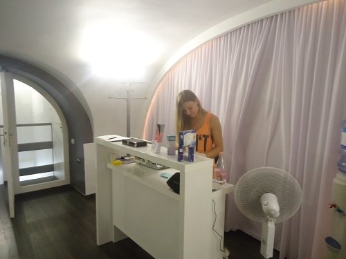 Mikor megérkeztem a Smiling Planet szalonjába egy tündérien aranyos, fiatal lány fogadott, aki első körben mindent szépen, tüzetesen elmagyarázott, majd belevágtunk. A segítségével legelőször megnéztük a fogam árnyalatát egy színskálán. Az asszisztens ezután steril gumikesztyű használatával előkészítette a fogfehérítéshez szükséges kellékeket.