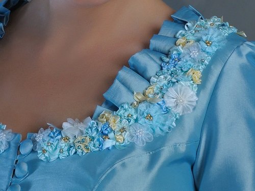 Babaruhák voltak, először papírbabákon olyan fülekkel, hogy rá tudd akasztani a babákra – sorozatban gyártotta nekem anyám a babákat, én meg a ruhákat. Aztán a nagymamám szerzett valahonnan egy hatalmas papírdobozt tele anyagmaradékkal – az volt ám az igazi! Most is tele vagyok potyadékkal…nincs is annál remekebb érzés, mint turkálni a darabkák között, megtalálni pont azt az egy fecnit, ami pont oda való…