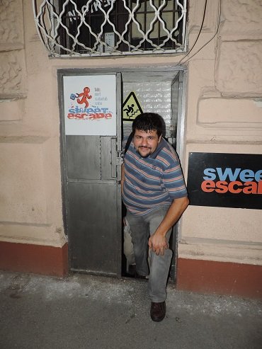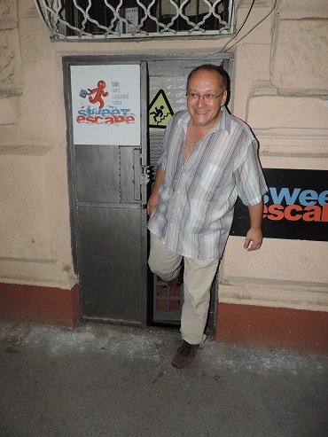 Sanyi, a hatodik csapattag még 7-kor sem volt sehol… és 7.05-kor sem…. és 7.10-kor sem. Már kezdtük elkönyvelni, hogy bizony elkésünk, és nélkülünk zárják be a szobát, elindult a poénkodás, hogy nekünk nehezített lesz a pálya, mert először a bezárt szobába kell majd bejutnunk, hogy aztán onnan ki is tudjunk jutni!