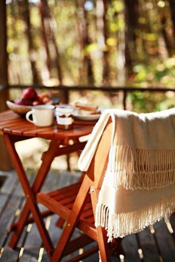 …hűvös reggeleken pokrócba bugyolálva kávézunk a verandán