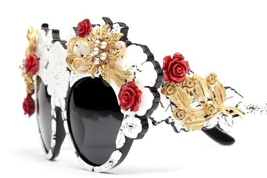 A Dolce&Gabbana új, vintage stílusú szemüveg-kollekcióját Szicília szigete inspirálta. A sorozatból kiemelkedik egy fehér virágmintás, vörös rózsákkal és arany brossokba foglalt gyöngyökkel díszített, limitált számban készült darab, melyből mindössze egyetlen egy került Közép-Európába.