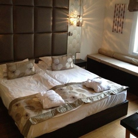 És ha már olyan magasan voltam, nem hagyhattam ki a mesésen kialakított tetőtéri pihenőkertet, ahonnan remek kilátás nyílik a szomszédos Bazilikára, a Zsinagóga kupoláira és a várra. És, bár a téli hideg nem engedte, hogy belecsobbanjak, azért kellő távolságról megcsodálhattam a napozóterasszal ellátott tetőtéri medencét is, mely egyedülállónak számít a magyarországi szállodák között.